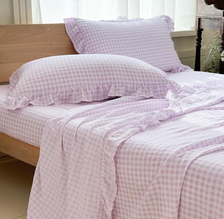 Bring the charm of a cozy cottage into your home with this checkered pattern in soft lavender. It’s both classic and feminine, perfect for any age group.